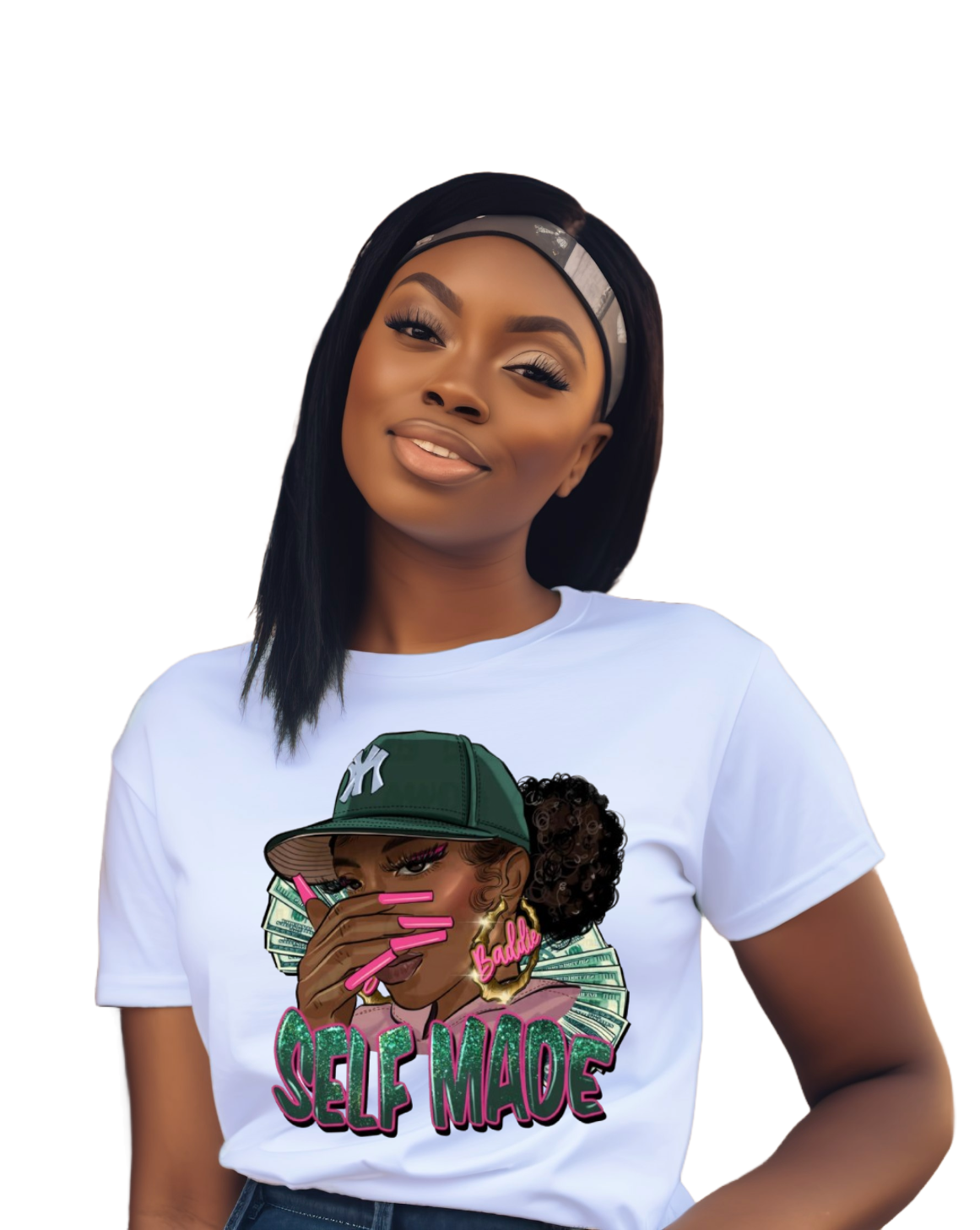 This high-quality Self Made T-Shirt is perfect for anyone looking to showcase their hard work and success. Made with durable materials, this shirt is both comfortable and stylish, making it the perfect addition to any wardrobe. Show off your achievements with confidence in this Self Made T-Shirt. 12”Print Design